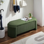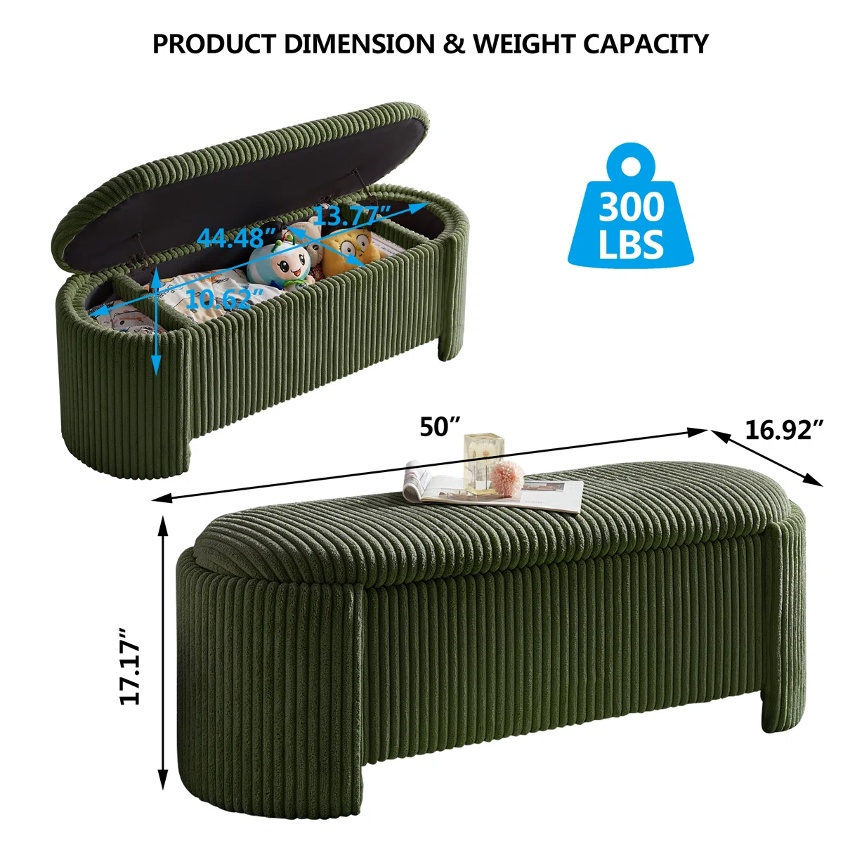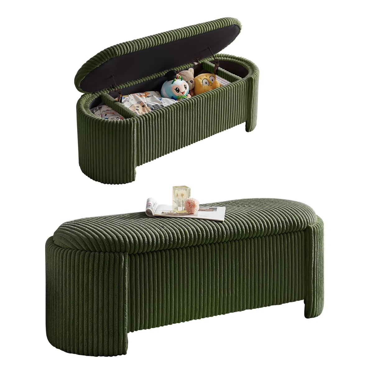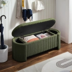 This striped velvet storage bench features a modern arc-shaped design, with full-length armrests that reach the floor for a bold and luxurious look. The interior includes divided compartments for better storage organization, while the smooth hinge mechanism makes opening safe and effortless.