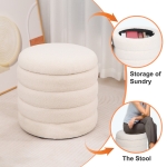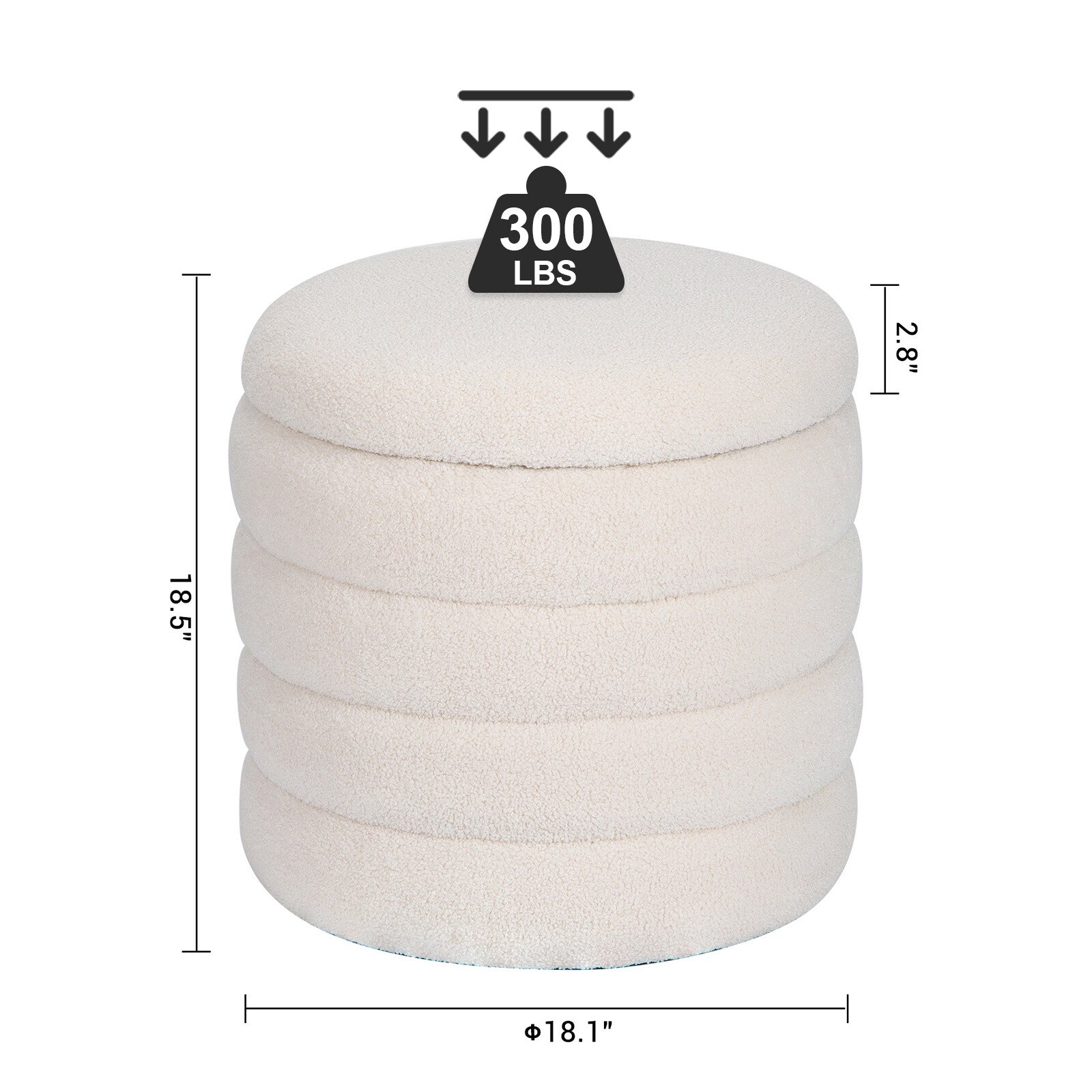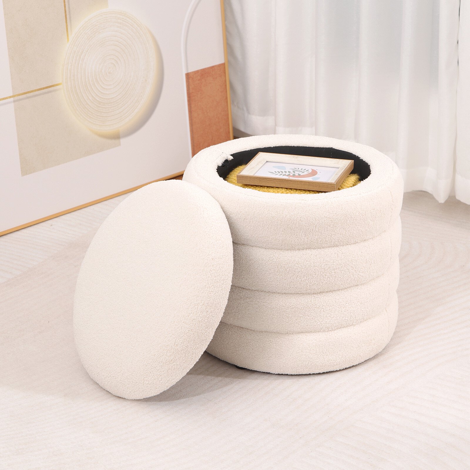 This Teddy bouclé round storage ottoman combines modern simplicity with soft comfort. Upholstered in plush textured fabric, it features a lift-top lid that opens to reveal discreet storage for everyday items like scarves, books, or remote controls.