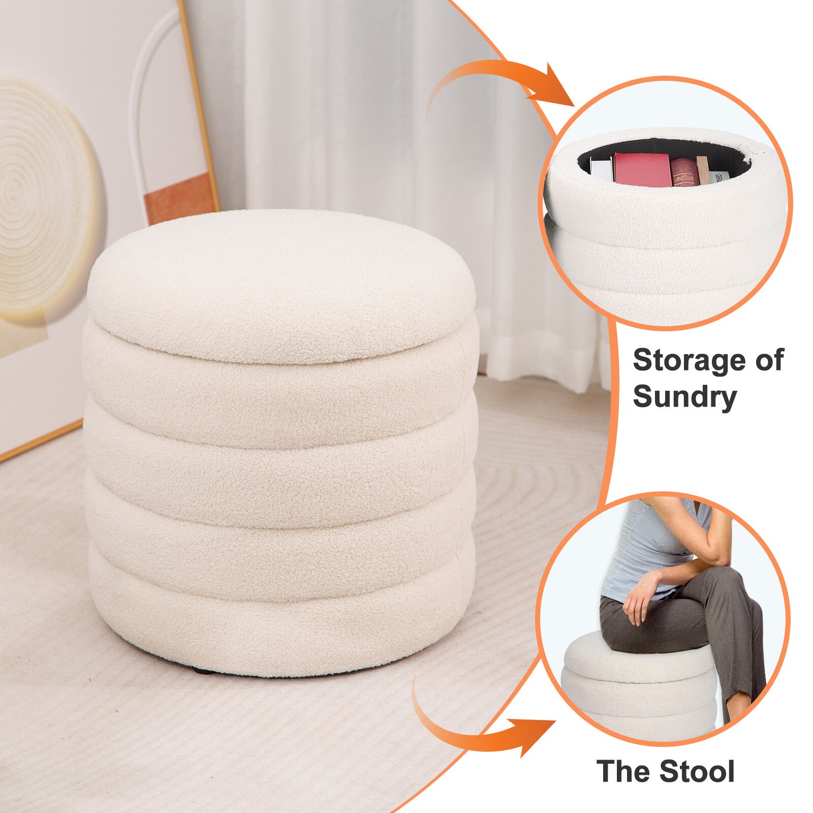 The non-slip foot pads keep it stable on wood or tile flooring, making it safe and practical. Its compact, round design fits perfectly in bedrooms, dorms, entryways, or vanity corners—as a seat, footrest, or functional decor piece.