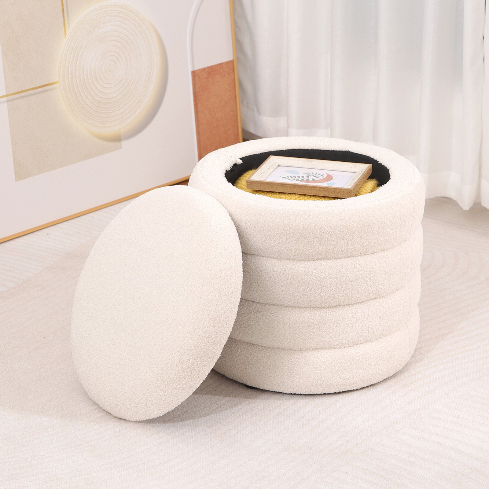 Teddy Bouclé Round Storage Ottoman with Anti-Slip Feet
