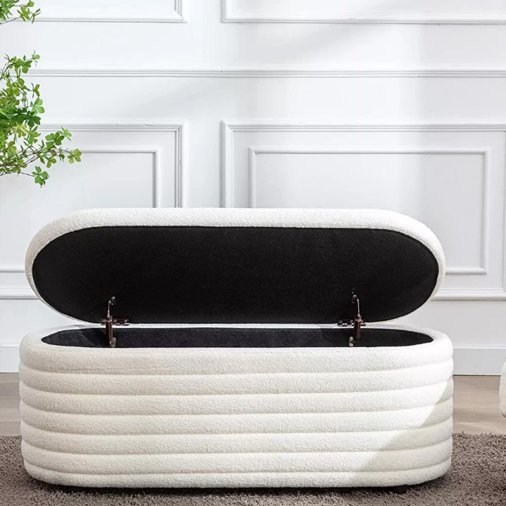 Modern Bouclé Upholstered Storage Cube Ottoman