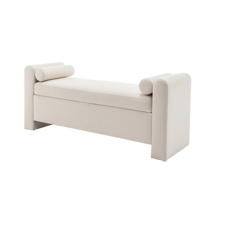 Luxury Armrest Storage Bench with Round Cushion Padded Seat