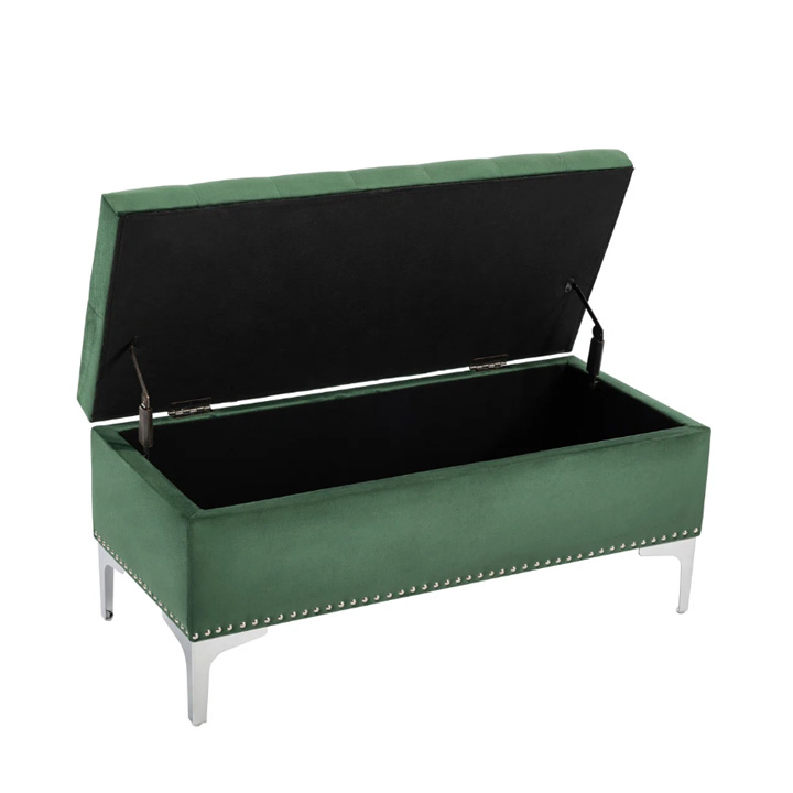 Contemporary Velvet Storage Ottoman Bench in Olive Green