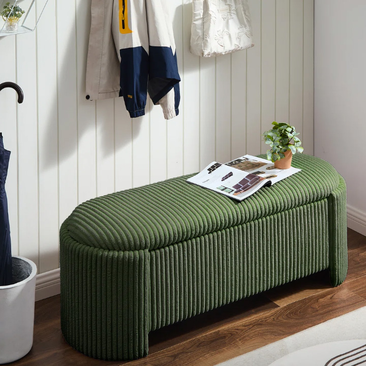 Modern Striped Velvet Storage Bench with Full Armrest Sectional Compartments