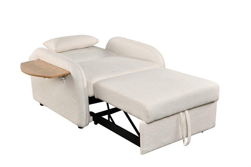 Home / Products / Sofa Bed / Sofa / Beige Armchair Sofa Bed with Adjustable Backrest and Hidden Coffee Table – Upholstered Pull-Out Sleeper Chair