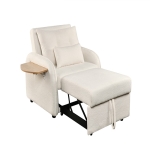 Armrest features a retractable side table, providing a convenient surface for cups, remotes, or reading materials.