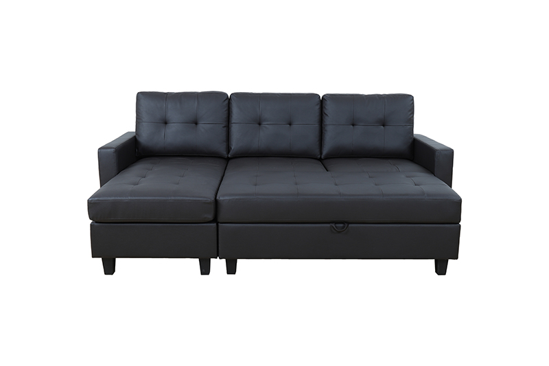 This modern faux leather sectional sofa combines style, comfort, and functionality. Featuring a reversible chaise, elegant tufted cushions, a large storage ottoman, and the ability to convert into a bed, it’s ideal for dynamic living spaces. Crafted with high-resilience foam, a solid wood frame, and handmade detailing, it's built for durability and sophistication.