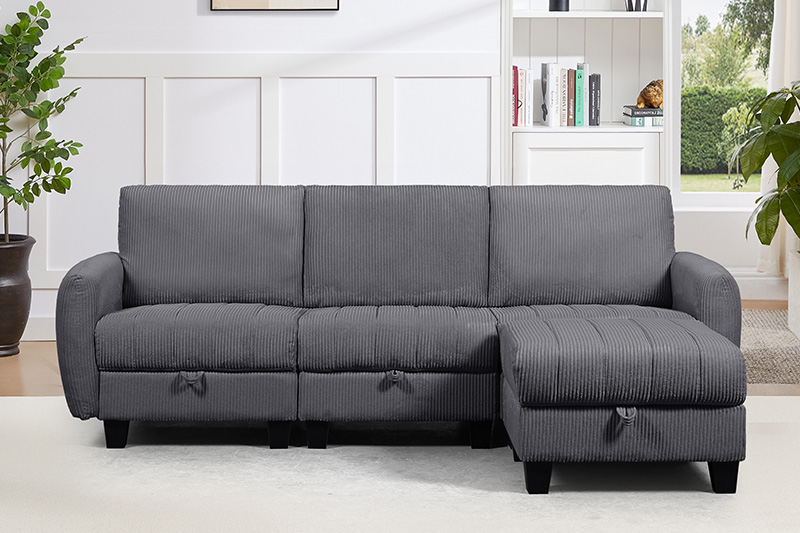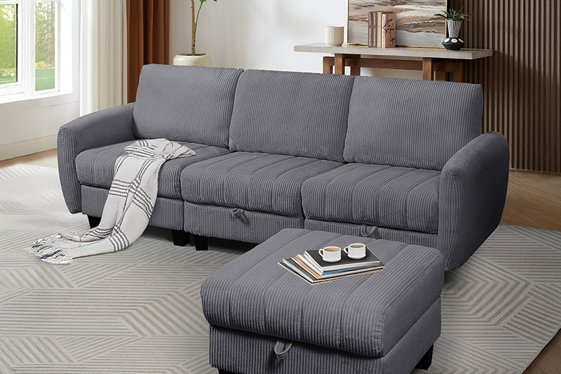 Each seat includes hidden storage, while the solid wood frame and high-density foam ensure comfort and durability. The modern curved arm adds a clean, contemporary touch. Proudly handcrafted by a professional OEM upholstered furniture manufacturer, trusted by global brands.