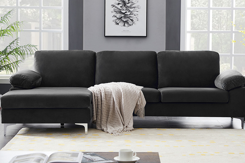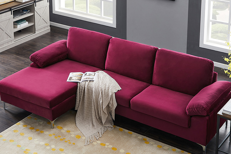This contemporary velvet corner sofa blends refined aesthetics with everyday comfort. Upholstered in soft-touch fabric and supported by sleek stainless steel legs, it offers a modern silhouette with practical durability. The plush armrests and high-density cushions provide a relaxing seating experience, while the solid wood frame ensures long-lasting support.