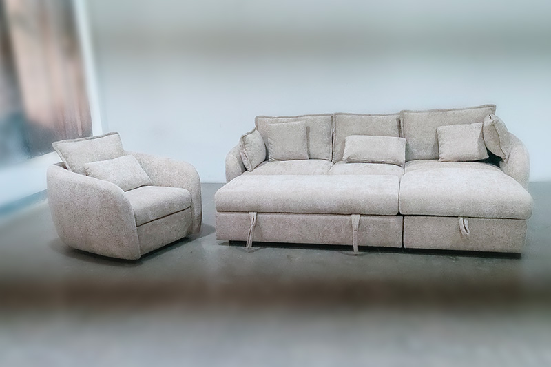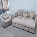 This modular sofa bed and accent chair set combines comfort, function, and style. The convertible sleeper sofa easily transforms into a bed for guests, while the matching armchair offers cozy seating for any living space. Upholstered in soft, durable fabric and built with a sturdy frame, this set is ideal for modern homes.