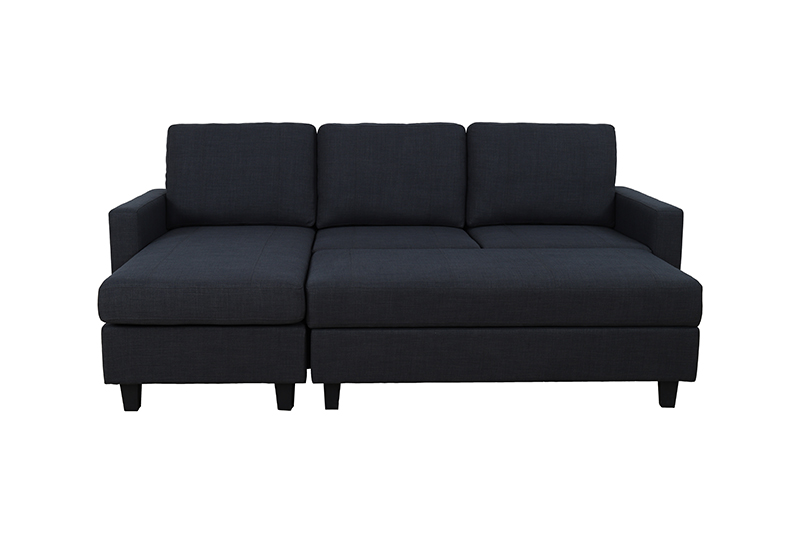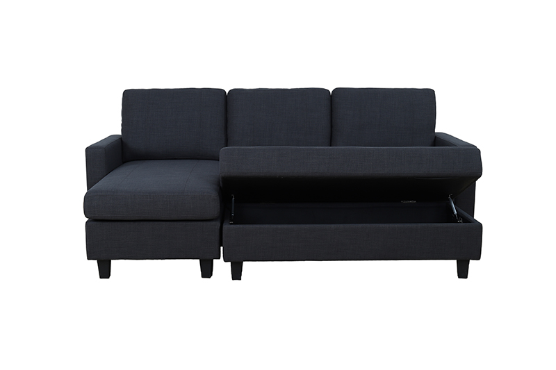 This versatile L-shaped fabric sofa is designed for modern living with practical features and durable construction. The reversible chaise easily adapts to any room layout, while the storage ottoman doubles as an extension to form a standard-size bed.