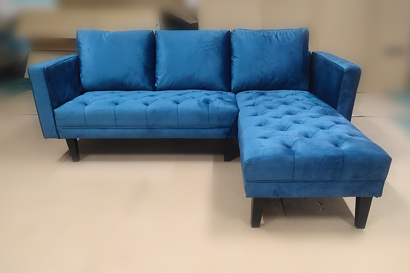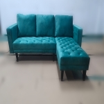 This velvet corner sofa offers a blend of luxury and practicality with its tufted cushions, reversible chaise, and KD packaging designed for efficient shipping and storage. The rich velvet fabric paired with classic black rubber wood legs creates a timeless look perfect for modern living spaces.