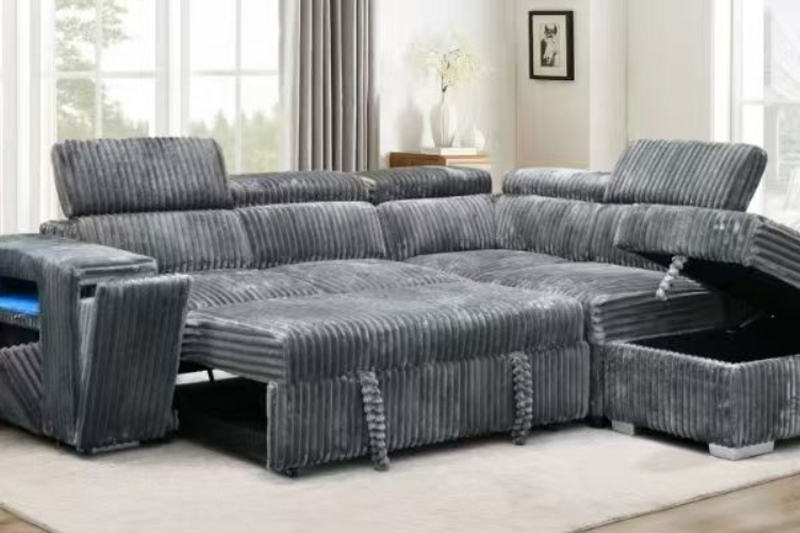 Convertible Corner Sofa with Storage Chaise, Pull-Out Bed Smart Armrest Design