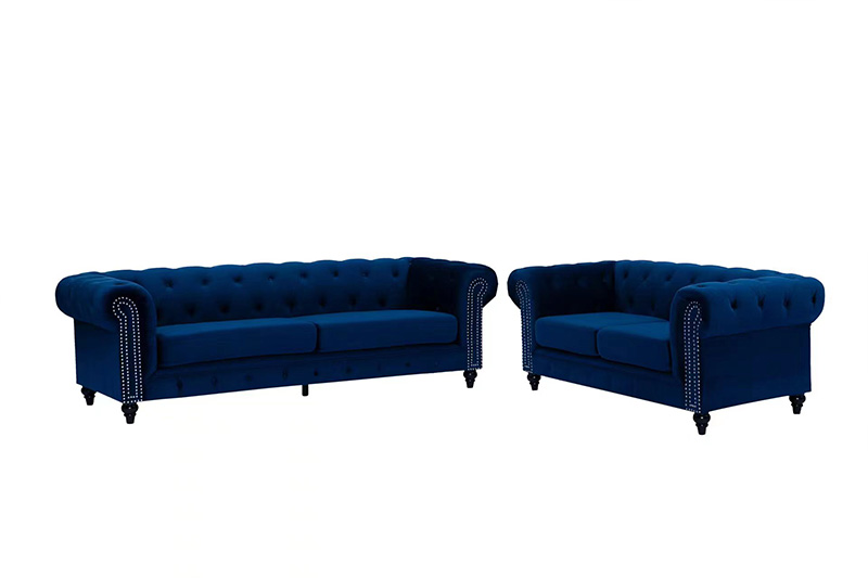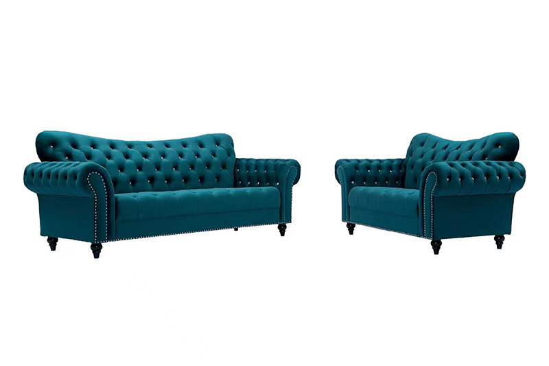 Classic 1+2+3 Velvet Sofa Set with Crystal Tufting Nailhead Arms