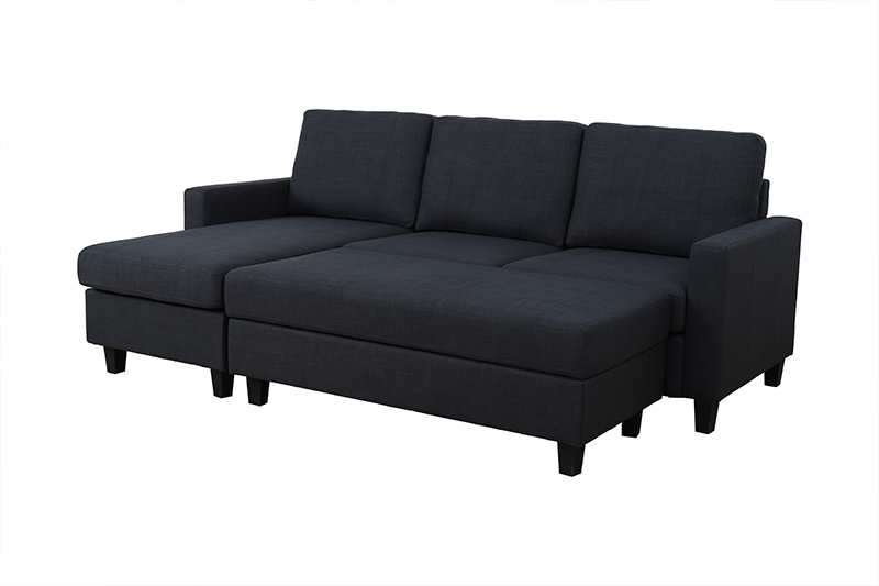 Reversible L-Shaped Fabric Sofa with Storage Ottoman Bed Function