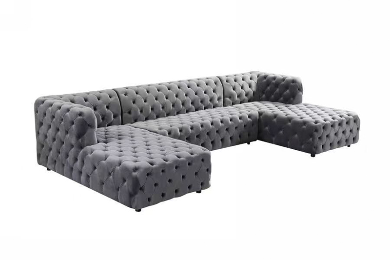 Luxury U-Shaped Tufted Sofa with Solid Wood Frame Plush Cushions