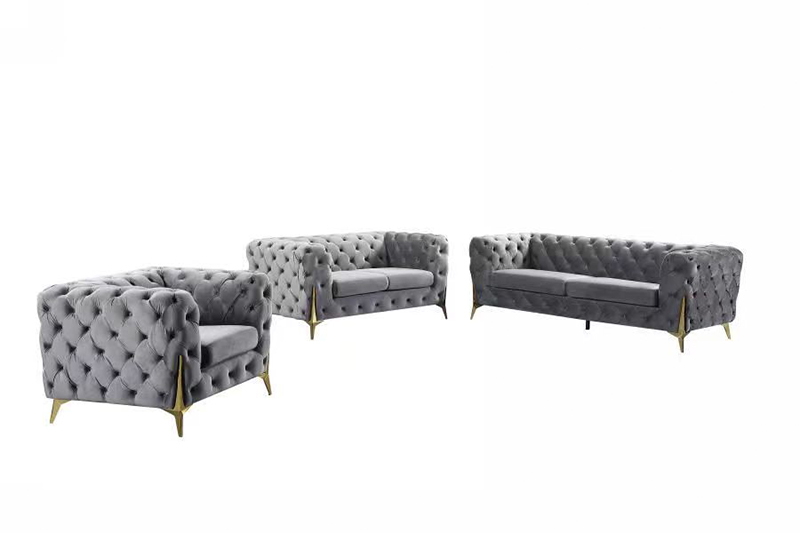 Luxury Velvet 1+2+3 Sofa Set with Tufted Back and Gold Metal Legs