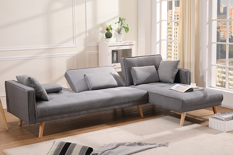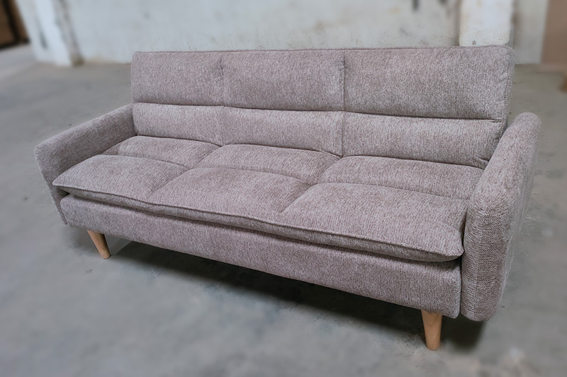 Chenille Fabric KD Sofa Bed with Wood Trim and Rubber Wood Legs