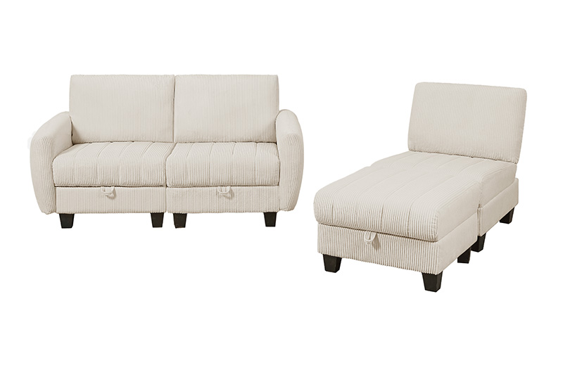 Home / Products / Sofa Bed / Sofa / Modular Storage Sofa with Curved Armrest – 3-Piece KD Sectional for Flexible Layouts