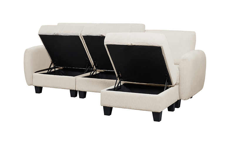Each seat comes with hidden storage, while the solid wood frame and high-density foam provide lasting support and comfort. With handcrafted details, this sofa is made by a professional OEM upholstered furniture manufacturer trusted by global brands.