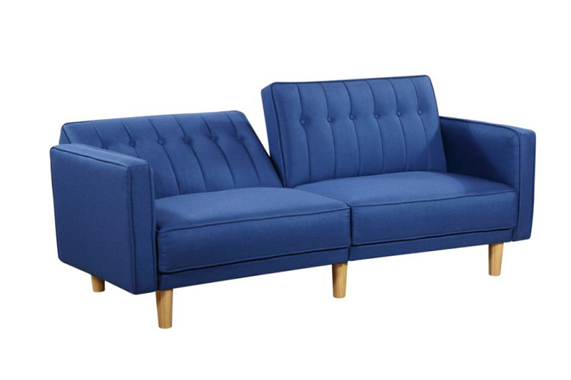 Navy Blue Upholstered Sofa Bed with Vertical Channel Tufting Wood Legs