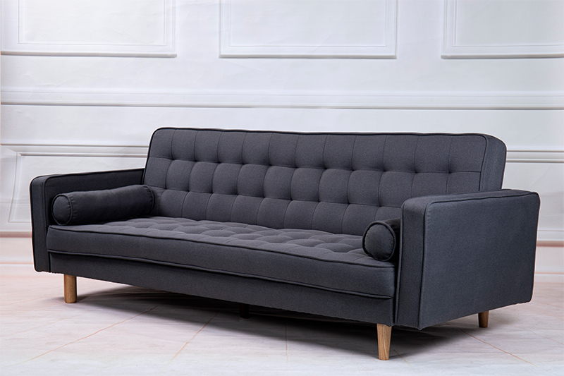 Classic Grey Fabric Sofa Bed with Tufted Backrest and Natural Wood Legs
