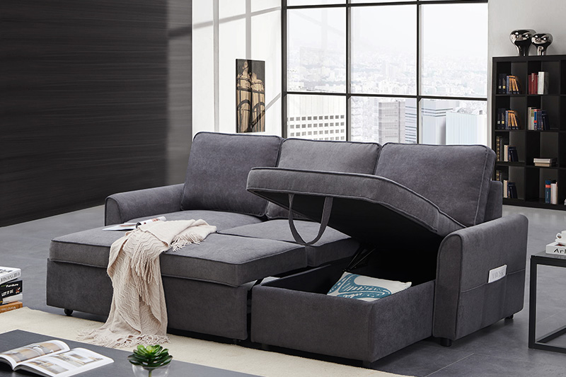 KD Grey Pull-Out Sleeper Sofa with Reversible Chaise Storage Arm Pocket