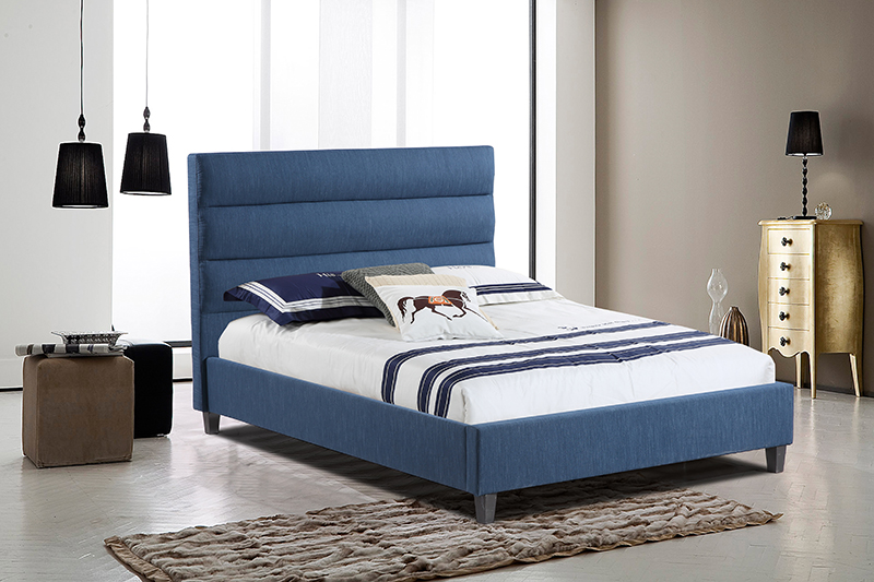 Modern Upholstered Platform Bed with Vertical Channel Tufted Headboard – Blue Beige
