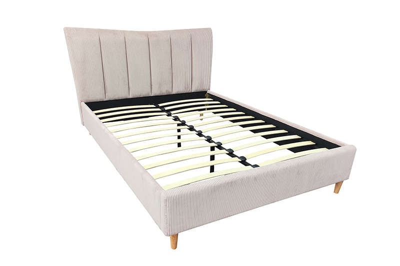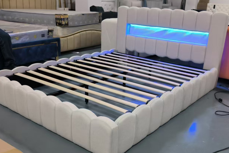 Modern Upholstered Platform Bed Frame with Curved Slats and Padded Headboard