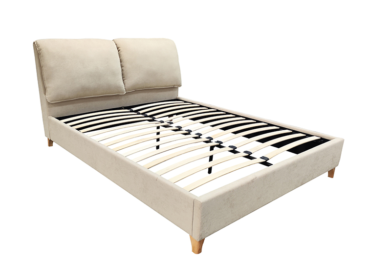 Upholstered Bed Frame with Pillow Headboard and Wooden Legs