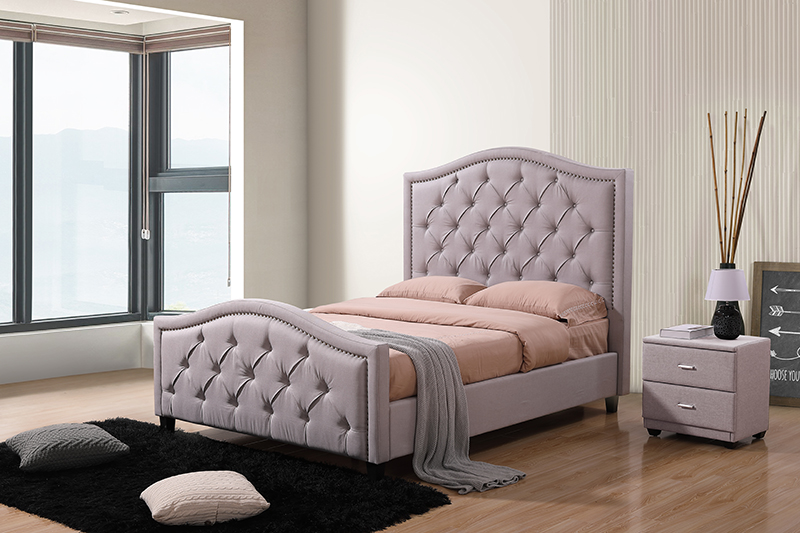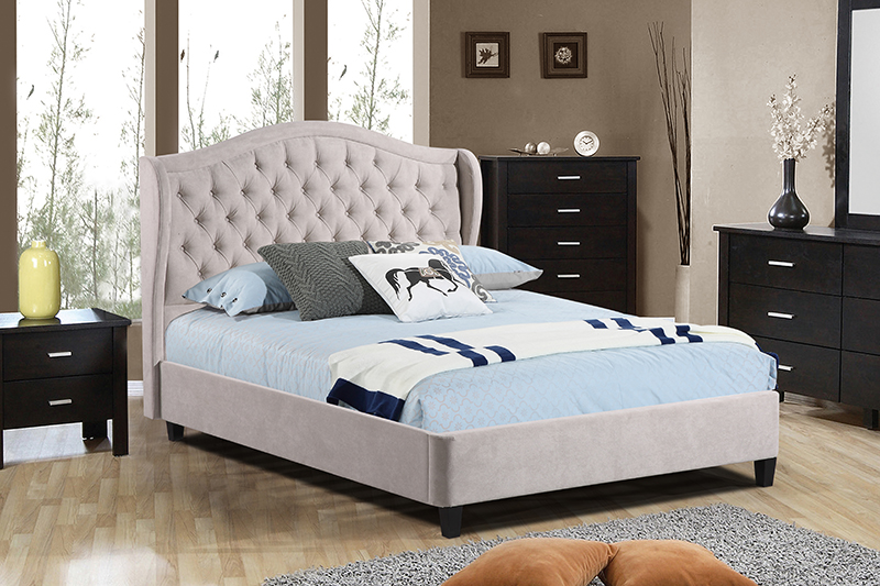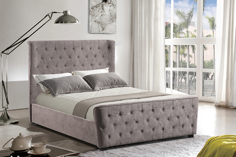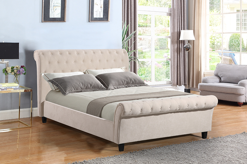 Upholstered Sleigh Bed with Scroll Headboard and Footboard – Queen/King Size