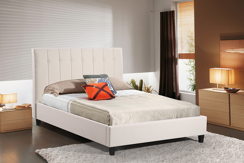 Modern Vertical Tufted Upholstered Bed Frame with Fabric Headboard – Queen/Full Size