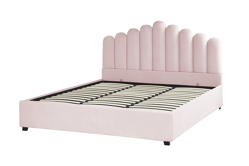 Pink Upholstered Bed Frame with Scalloped Headboard – Modern Velvet Platform Bed