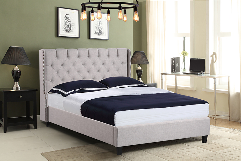 Modern Tufted Upholstered Bed Frame with Wingback Headboard, Linen Fabric Nailhead Trim