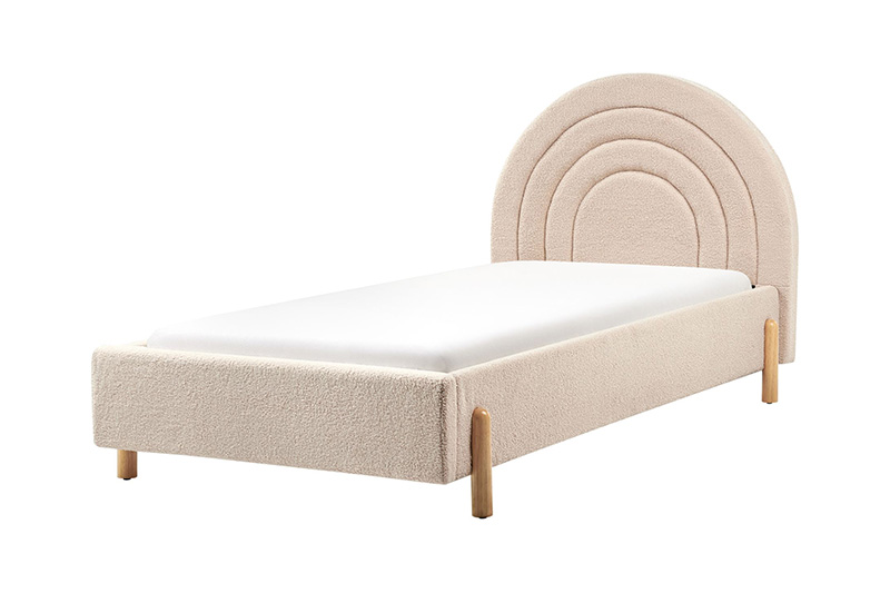 Kids Upholstered Bed with Rainbow Arch Headboard – Soft Bouclé Fabric and Rounded Legs