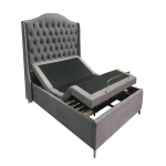 The HFB1364 adjustable bed combines classic elegance with modern comfort technology. Featuring a beautifully tufted velvet headboard with decorative nailhead trim, this bed offers seamless adjustability via a quiet, motorized base.