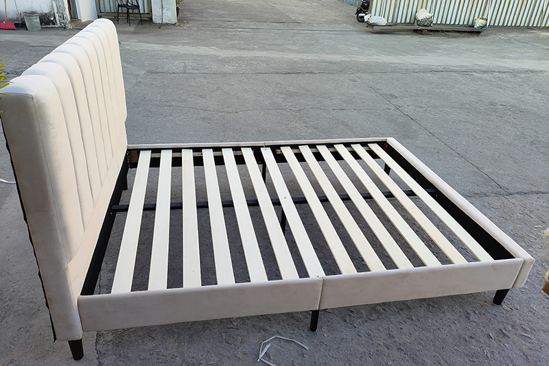 Bring contemporary elegance to your bedroom with this velvet upholstered bed frame. Featuring a plush vertical channel tufted headboard and sturdy slatted base, this bed adds both style and support. The rich velvet fabric offers a luxurious feel, while the streamlined design suits modern and minimalist bedrooms.