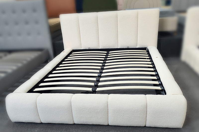Built on a reinforced slatted platform, it offers long-lasting support without the need for a box spring. Manufactured by a professional upholstered furniture factory with extensive export experience, this bed combines sculptural elegance with structural integrity—a premium choice for upscale interiors.