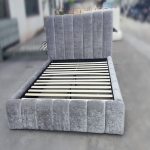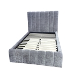 The structured headboard features deep-set vertical channels, adding elegant texture and architectural rhythm to premium interiors.