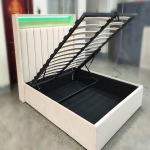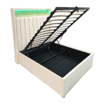 This LED hydraulic storage bed brings style and function together with modern tech features. The headboard includes a built-in LED light strip, offering soft illumination for ambiance or nighttime use. The gas-lift storage mechanism easily reveals a large-capacity under-bed space—ideal for compact homes or design-led apartments.