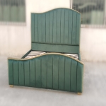 This luxury velvet bed frame stands out with its eye-catching sculpted silhouette and refined gold accents. Wrapped in plush velvet and framed with brushed stainless steel trim, it exudes modern glamour.