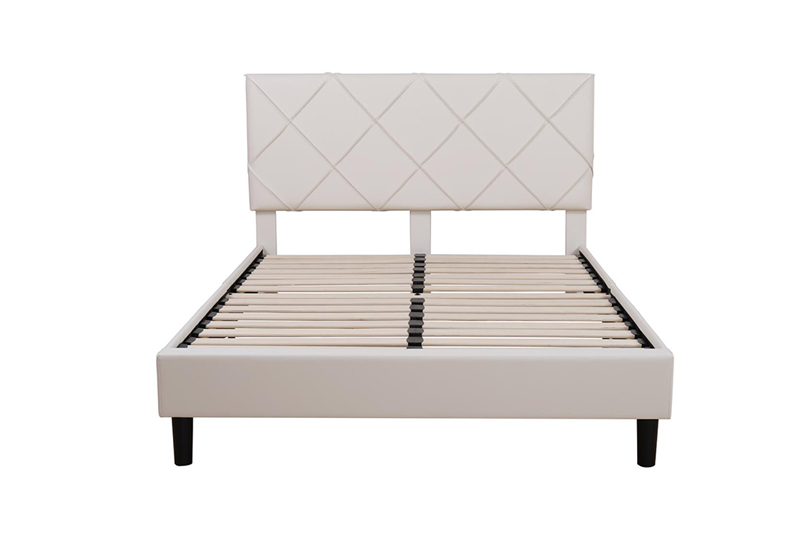 Modern Minimalist White Faux Leather Bed Frame