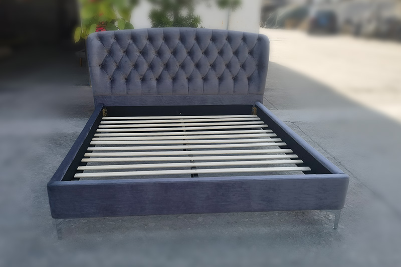 This tufted upholstered bed frame blends traditional button-tufted styling with modern minimalism, making it an ideal piece for upscale bedrooms, hospitality suites, or boutique showrooms. Upholstered in premium velvet and set on metal legs, it reflects the precision and detail of a professional upholstered furniture manufacturer. Whether you're curating a refined home interior or sourcing for high-end furniture projects, this design is a versatile and stylish foundation for any mattress.