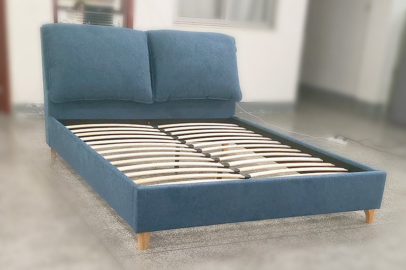 Upholstered in high-quality fabric with reinforced wood slat base for lasting comfort and support.