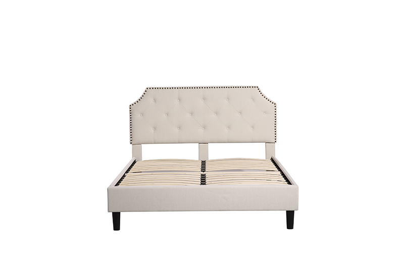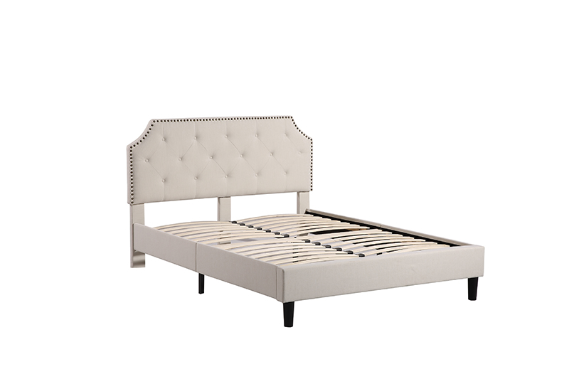 Home / Products / Upholstery Bed / Upholstered Platform Bed Frame with Tufted Headboard and Nailhead Trim