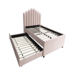 Upgrade your bedroom with the HFB1387 Velvet Upholstered Trundle Bed, a perfect blend of modern design and smart functionality. Featuring a unique pull-out trundle built into the frame, this bed is ideal for maximizing space in kids' rooms, guest rooms, or studio apartments.