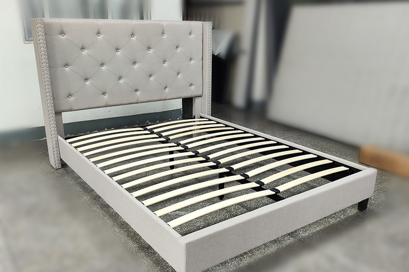 Tufted Upholstered Bed Frame with Nailhead Trim and Wingback Headboard