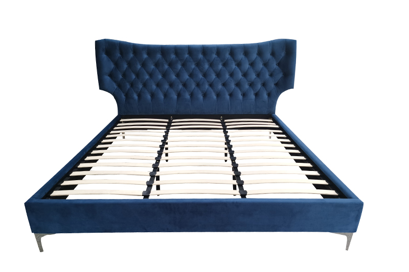 Luxury Wingback Upholstered Bed with Tufted Velvet Headboard