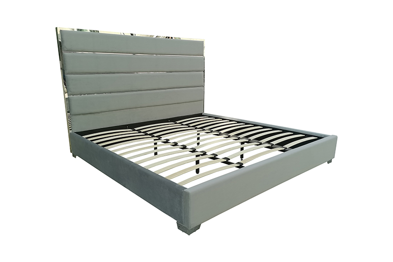 Modern Upholstered Bed with Silver Stainless Steel Trim