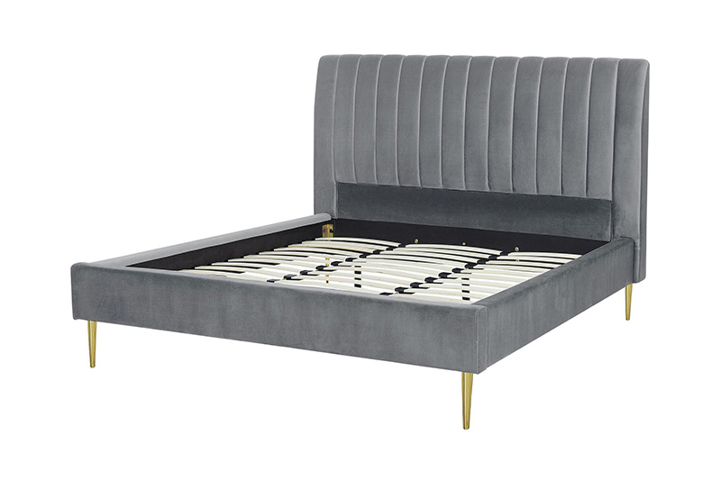 Modern Vertical Channel Upholstered Bed with Gold Metal Legs